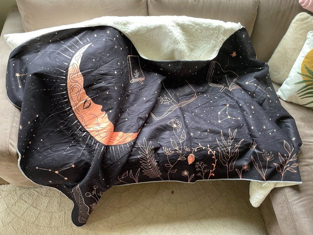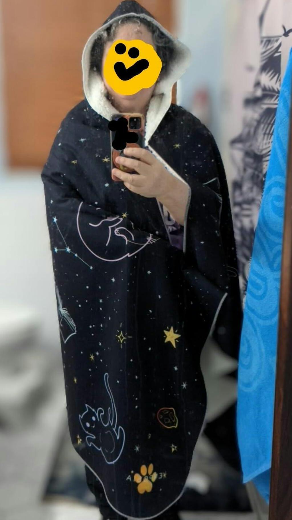 I’m a huge blanket nerd, having paid over 200 dollars on some weighted and heated ones. My hubby jokes that I’m turning our home into a blanket fort. Anyways, the unique designs and softness of the inner fabric easily makes this my favourite blanket! And it’s HOODED! I rarely use any of my other blankets because this one does such a good job trapping in all the coziness (it keeps me warm in -20 Canadian winters) and the button lets me have it on my shoulders with total ease when walking around. The blanket arrived faster than expected in a week and it came with a cute hot chocolate recipe! Enough to say that I’m a HUGE fan of my hooded blanket and plan on getting more as gifts for my family and friends once they restock since they’re always selling out fast!