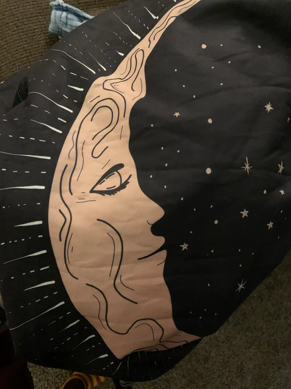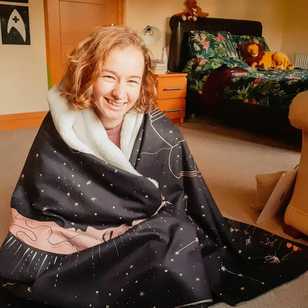 I'm absolutely in love with my hooded blanket! I've barely taken it off since I've got it, the little button on the front is genius and makes it easy to wrap yourself up and be burrito snug! The sherpa is so soft and warm and the Dreamer design is absolutely stunning - feels so magical!