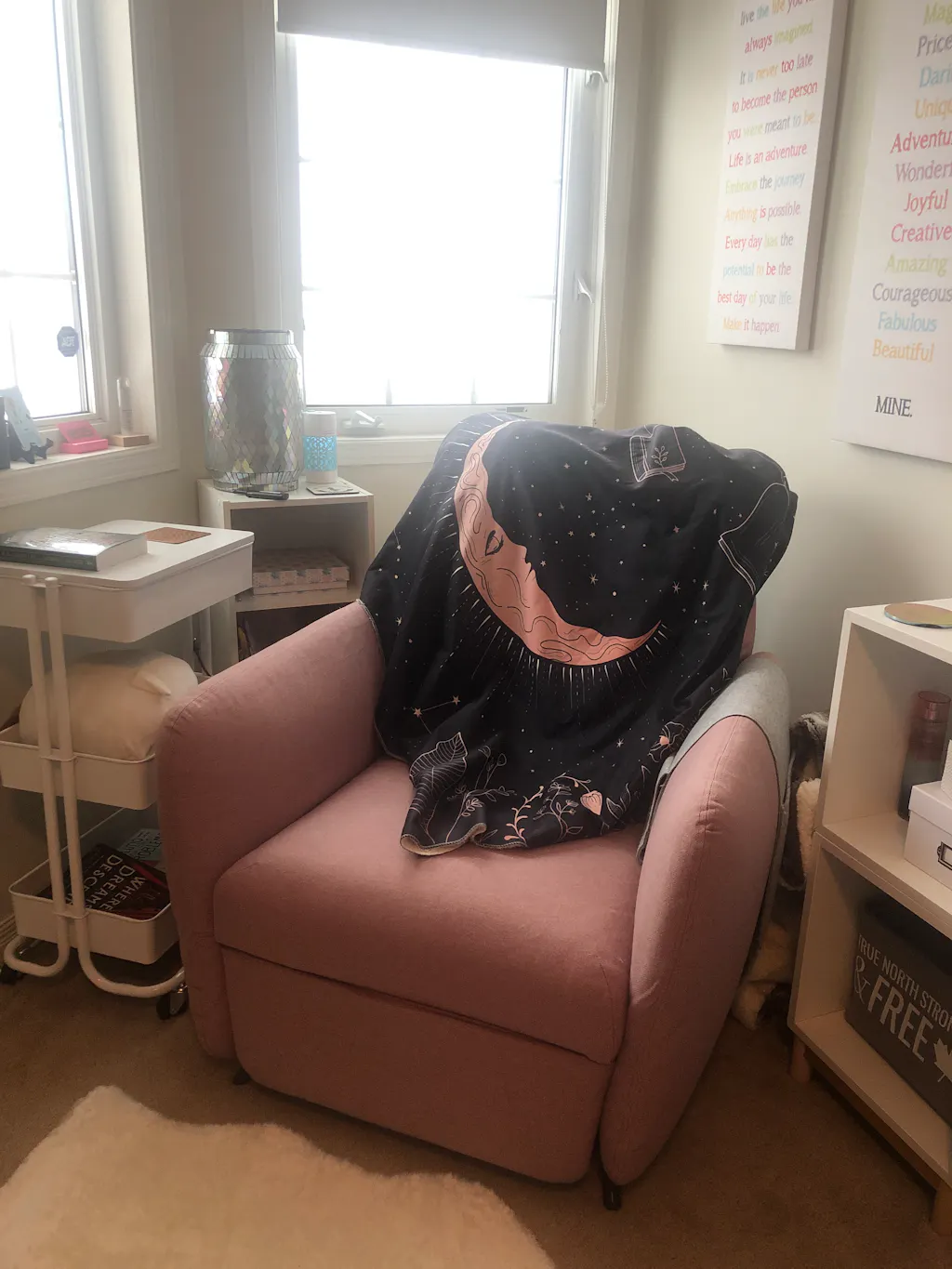 I saw this on a Booktuber’s blog and thought it looked so soft with such a cute design. My order came quick and I was so happy that it was just as soft and pretty as it looked online! I love using it when I snuggle down with a book.