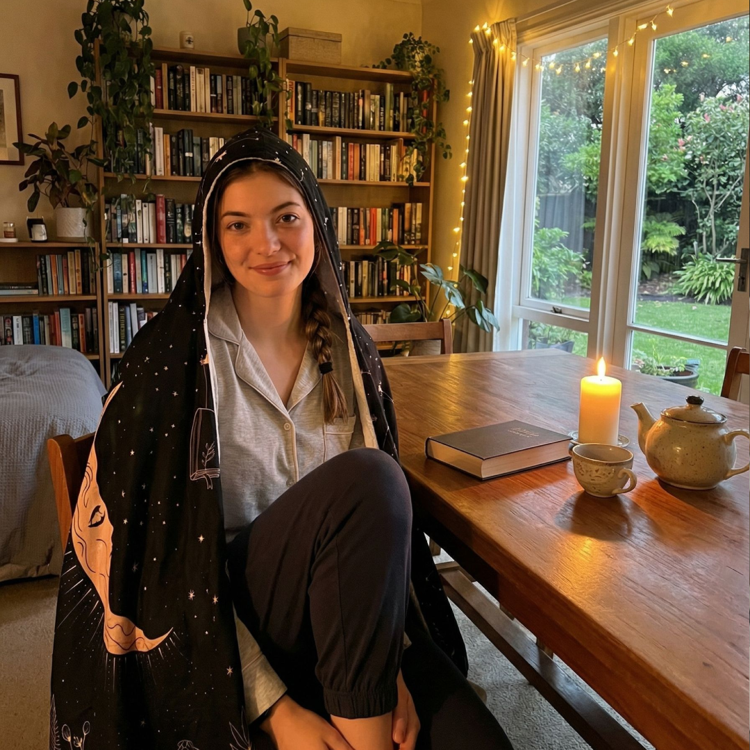 This has to be the cutest and most ingenious purchase I have done. As a book nerd, I sometimes find myself with a normal blanket wrapped around myself and twisting it around my neck as a handsfree cape and this was an all in one hooded blanket cape! The design was beautiful and its so soft and thick material. I was the envy of my family. Customer service was so helpful when my package was delayed during christmas season and resolved the issue with no problem. I will definitely come back and purchase another blanket for myself or as a present.
