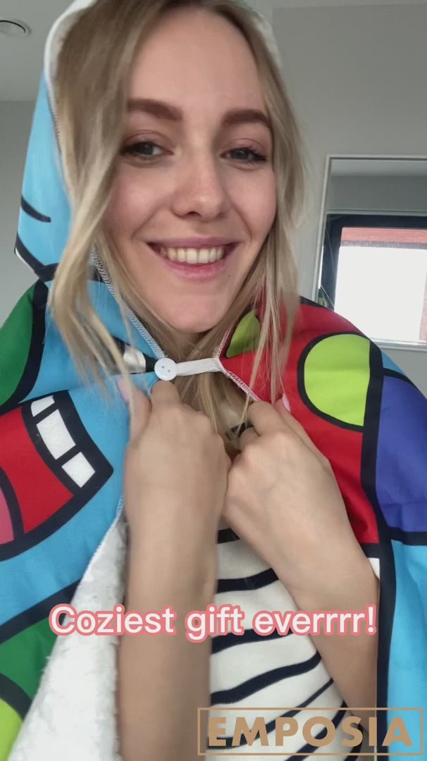 This 'EMPOSIA' Wearable Hooded Blanket is a wonderful concept! I love how soft and warm the blanket is, and that you can wrap your whole body in it. The hood makes it extra cozy, and the whole thing envelopes my body in a very comfortable feeling. I love the design of the one I ordered, very unique and pretty. These would also make awesome gifts for others. The price is pretty reasonable in my opinion, as it's of nice quality. I would definitely order another one as a gift, as I think most people would really enjoy this. ❤️