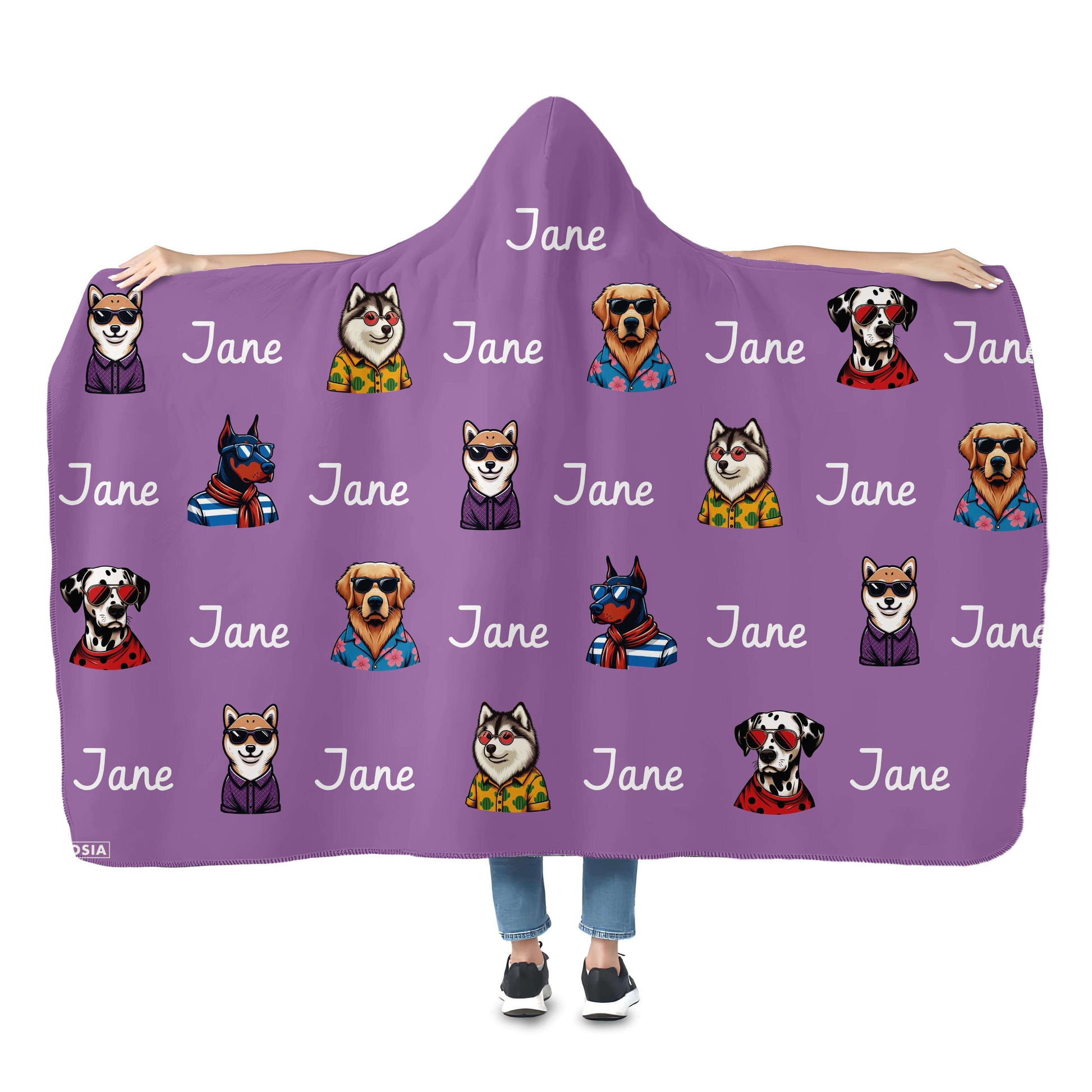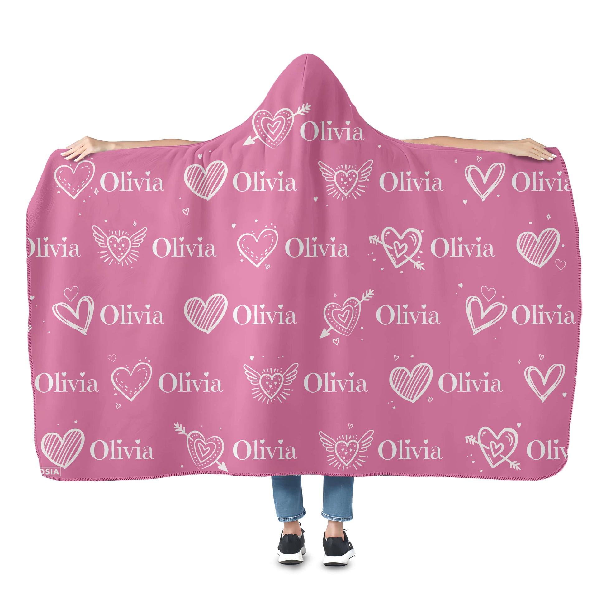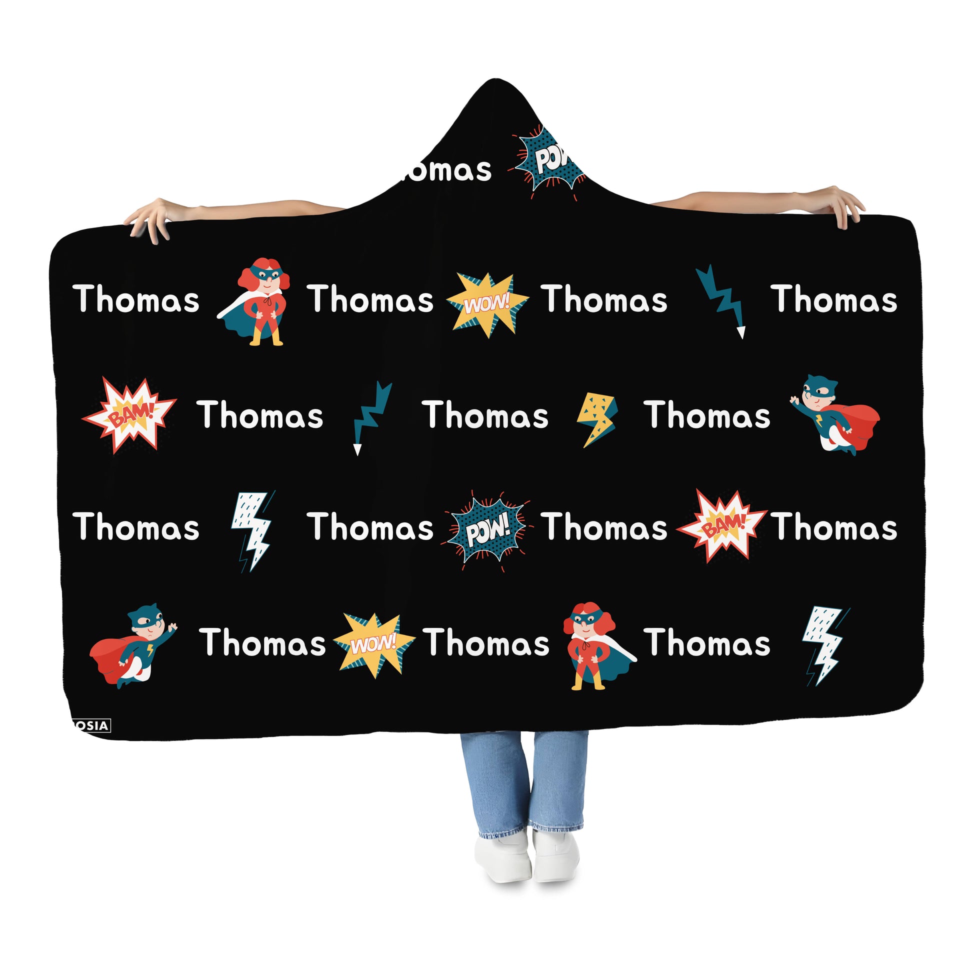 This is a nice hooded blanket that allows you to wear it around like a cloak. It has a button and loop that you use to keep it on. We chose the Dreamer design with the moon and floating books. Love it!