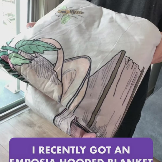 Iβm a huge blanket nerd, having paid over 200 dollars on some weighted and heated ones. My hubby jokes that Iβm turning our home into a blanket fort. Anyways, the unique designs and softness of the inner fabric easily makes this my favourite blanket! And itβs HOODED! I rarely use any of my other blankets because this one does such a good job trapping in all the coziness (it keeps me warm in -20 Canadian winters) and the button lets me have it on my shoulders with total ease when walking around. The blanket arrived faster than expected in a week and it came with a cute hot chocolate recipe! Enough to say that Iβm a HUGE fan of my hooded blanket and plan on getting more as gifts for my family and friends once they restock since theyβre always selling out fast!
