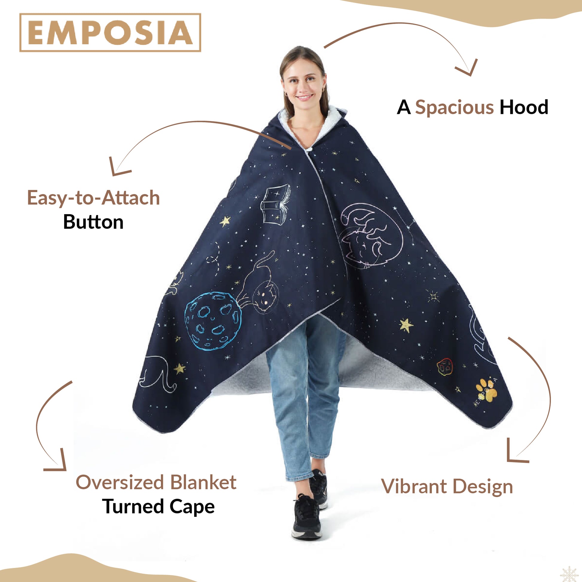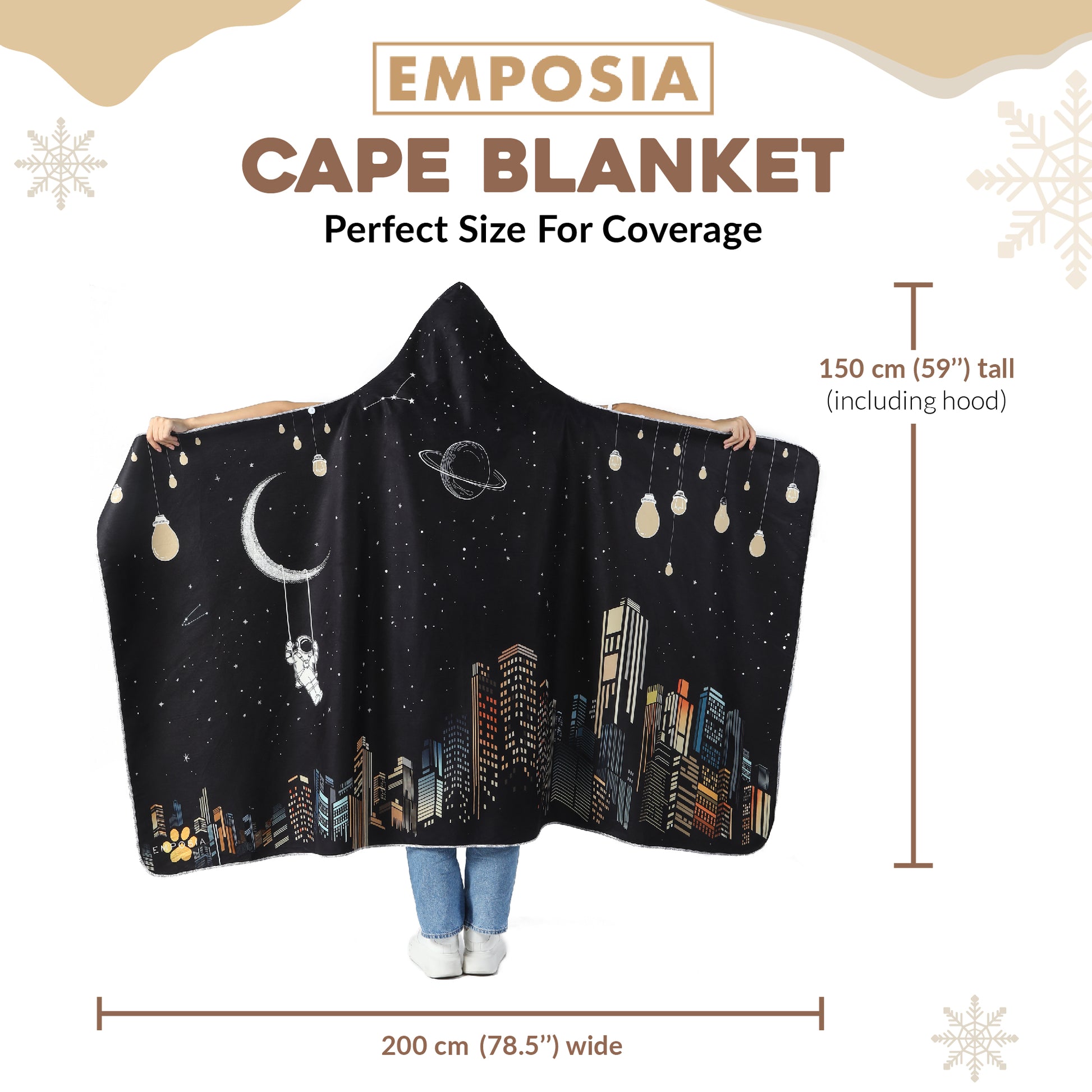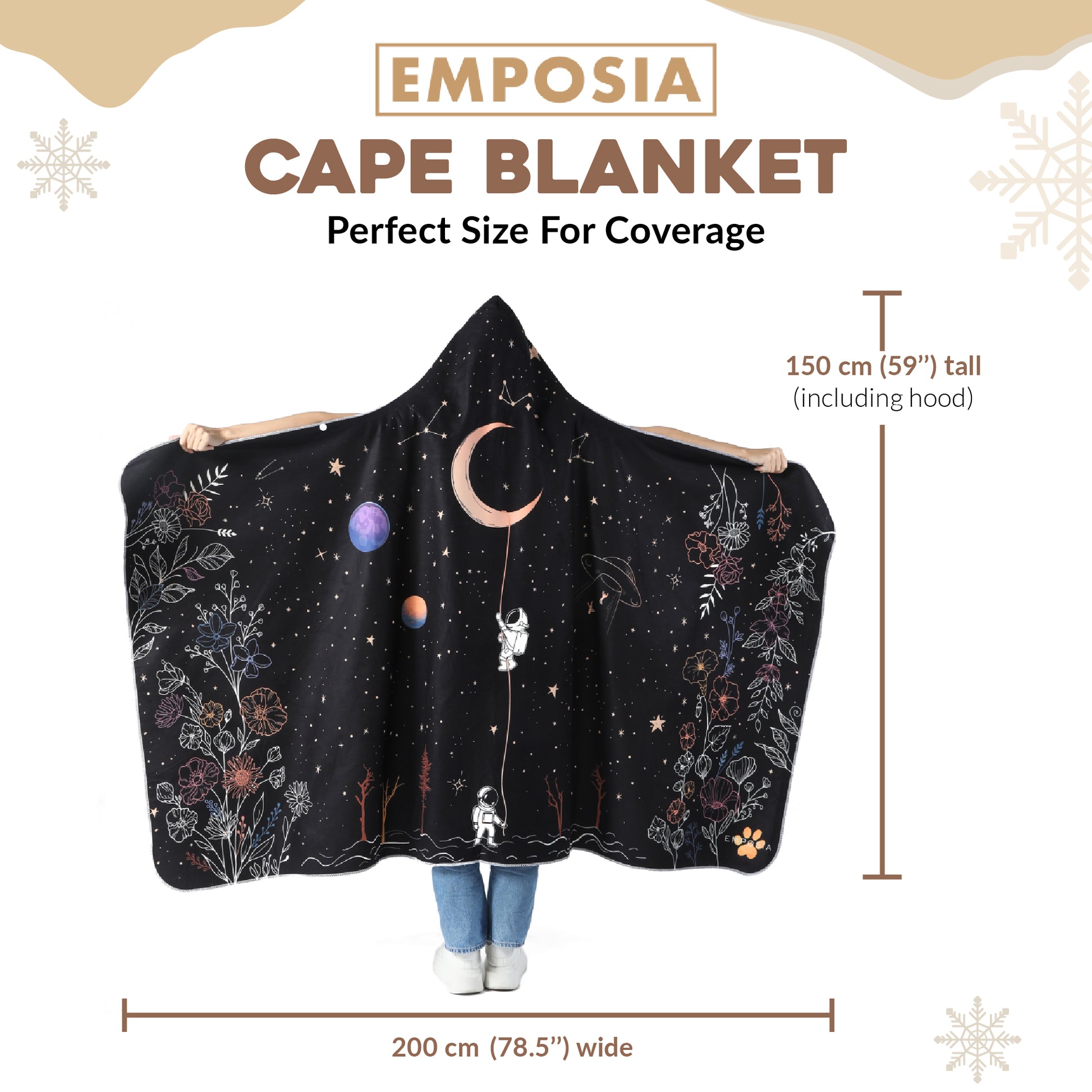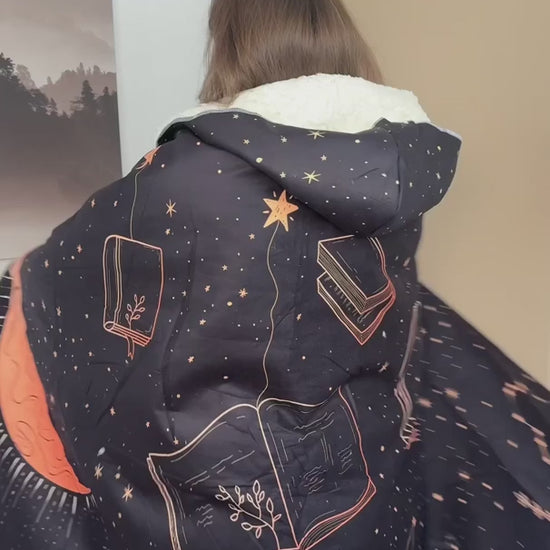 This has to be the cutest and most ingenious purchase I have done. As a book nerd, I sometimes find myself with a normal blanket wrapped around myself and twisting it around my neck as a handsfree cape and this was an all in one hooded blanket cape! The design was beautiful and its so soft and thick material. I was the envy of my family. Customer service was so helpful when my package was delayed during christmas season and resolved the issue with no problem. I will definitely come back and purchase another blanket for myself or as a present.