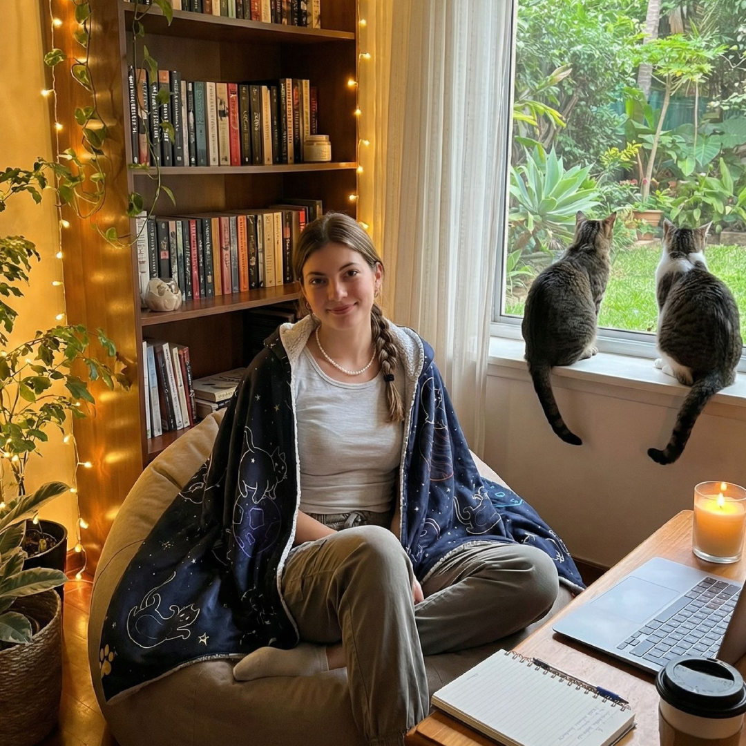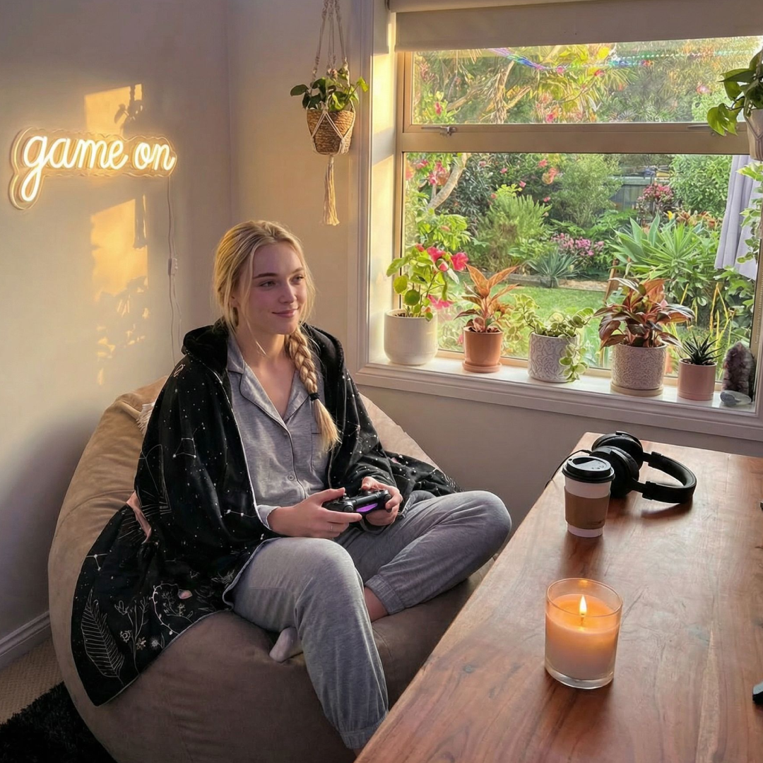 Whether you’re grinding through gaming marathons, vibing while you recharge with a good book, or pulling late night study sessions, our wearable hooded blankets keep you toasty AF without holding you back.